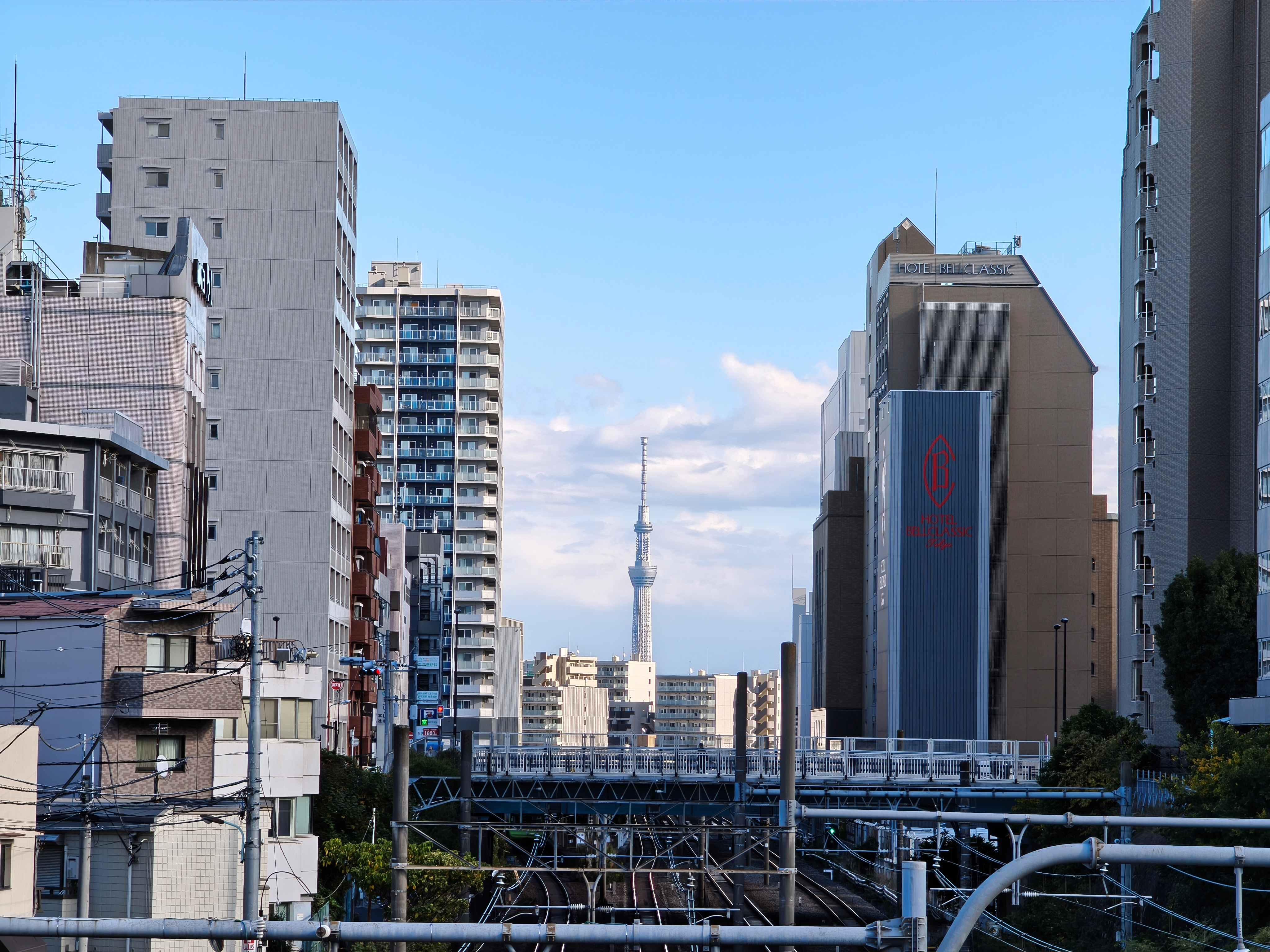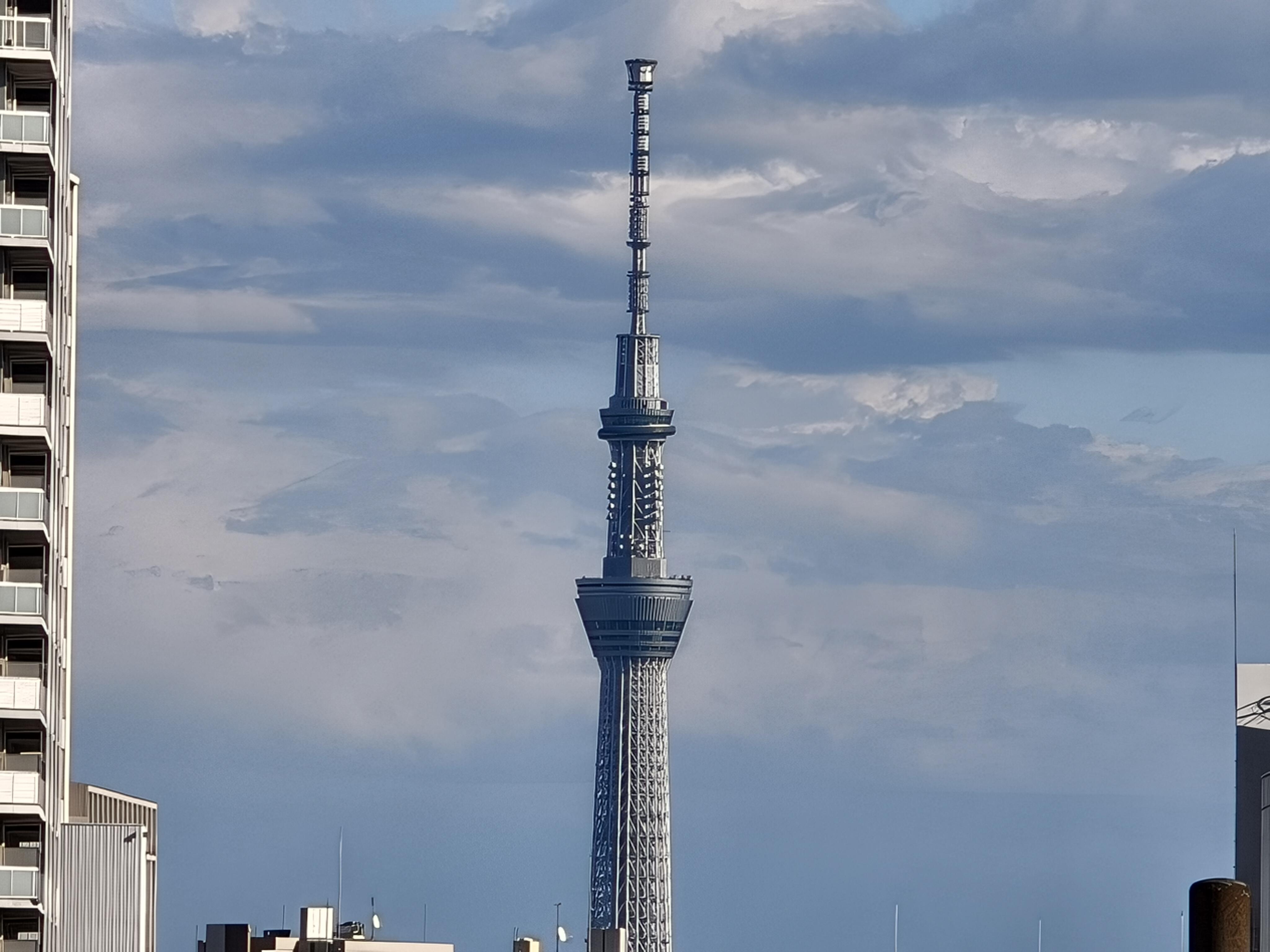 まずは大きくアップデートされた望遠カメラで撮影した写真からレビューします。池袋から直線距離で約9km離れたスカイツリーを1倍~ウルトラズームの20倍で撮影して検証しました。